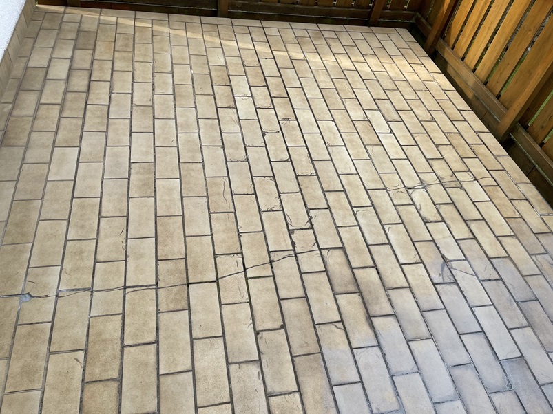 Häufig sehen Balkone und Terrassen wie in unserem Beispiel aus. Witterungseinflüsse lassen die Oberflächen der Fliesen abplatzen, die Fugen vermoosen. Kunststoffbeschichtungen werden rissig.